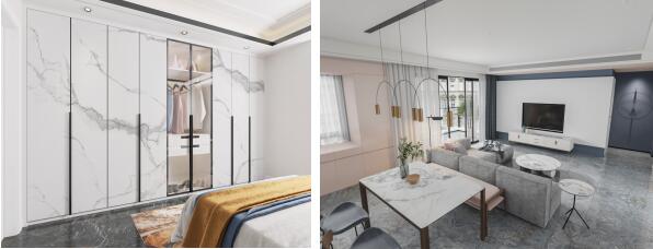 美爾奇巖板硬度高、耐沖擊、低吸水、零甲醛、抗菌抑菌、A1級防火性能等優(yōu)勢能匹配各類家居定制需求,無論是用作櫥柜、衣柜、電視柜,還是餐桌、茶幾、中島臺,美爾奇都能很好地還原設(shè)計師的創(chuàng)意和想法,表現(xiàn)出做工精美、外觀出眾的高品質(zhì)感。