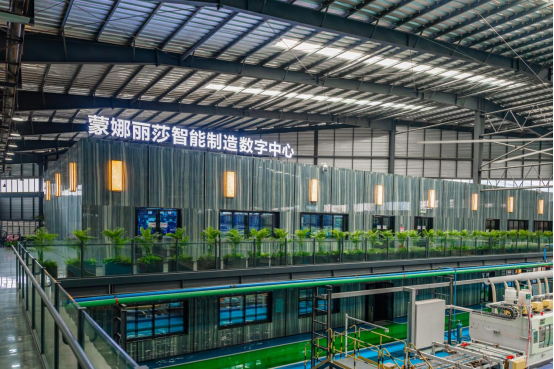 蒙娜麗莎在特高板數智化示范車間建立了智能制造大數據中心,充分發揮海量數據和豐富應用場景的優勢,數據信息系統與智能化設備之間互聯互通,能實時顯示每條生產線、每個工序的生產狀況以及產量、質量、耗能、耗電、耗水等數據,達到90%的數控和自動化水平,實現從生產到裝配一站式自動化工作,賦能傳統制造企業轉型升級,實現產業鏈的現代化與高端化,促進數字經濟與實體經濟的深度融合。