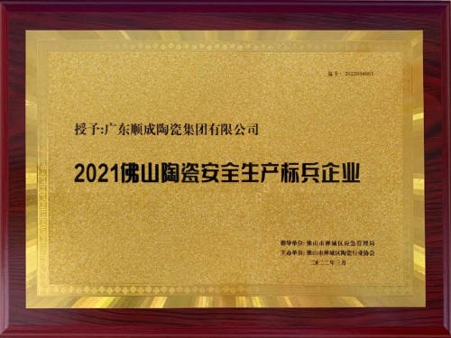 順成榮獲“2021佛山陶瓷安全生產(chǎn)標(biāo)兵企業(yè)”