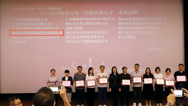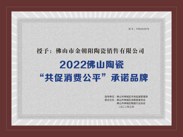 金朝陽瓷磚作為行業龍頭新明珠旗下的實力品牌,憑借過硬的產品質量和市場口碑,獲得了2022佛山陶瓷“共促消費公平”承諾品牌和2021佛山陶瓷安全生產達標企業兩項榮譽。