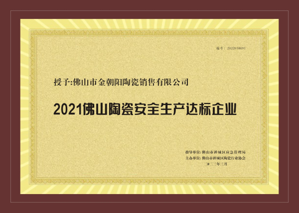 品質見證 榮譽加冕丨金朝陽榮獲【2021佛山陶瓷安全達標企業】等兩項榮譽