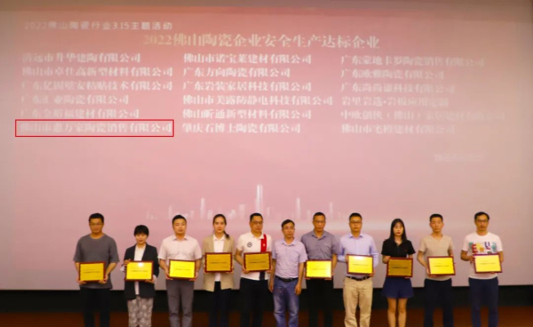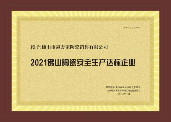 新明珠集團實力品牌惠萬家瓷磚榮獲“2021佛山陶瓷安全達標企業”等兩項殊榮