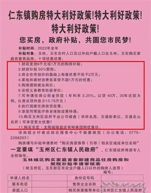 通知明確規定,只要符合條件的農村戶籍人口和新市民在主城區(玉州區、玉東新區)購買首套房,就可以享受購房補貼、契稅優惠,政府還幫忙安排購房人子女義務教育階段學位、提供免費職業技術培訓、提供就業崗位等。