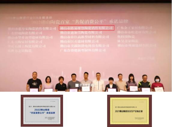 3月,路易摩登堅持以服務消費者的立場出發,從生產到銷售各環節全面保障消費者的權益,為促進消費環境的公平出一份力,榮獲“2022佛山陶瓷’共促消費公平’承諾品牌”和“2021佛山陶瓷安全生產達標企業”。