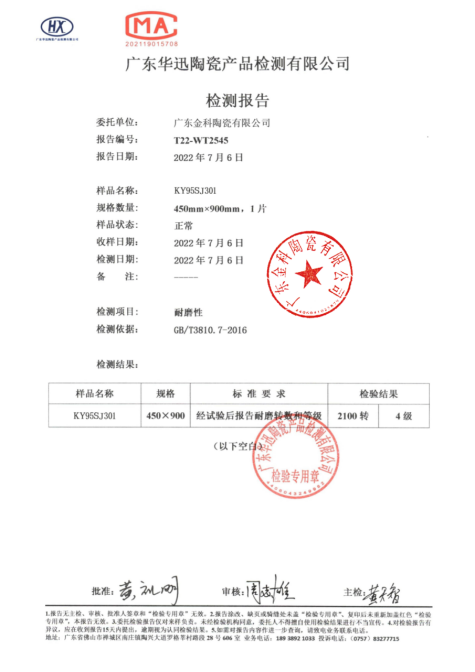 釉面層的優(yōu)質(zhì)高硬度晶體結(jié)構(gòu),使雙品石釉面莫氏硬度大于6級,比牙齒更堅硬,更無懼不銹鋼小刀;耐磨度達(dá)到4級,可用于門廳、走廊,或公共場所使用。